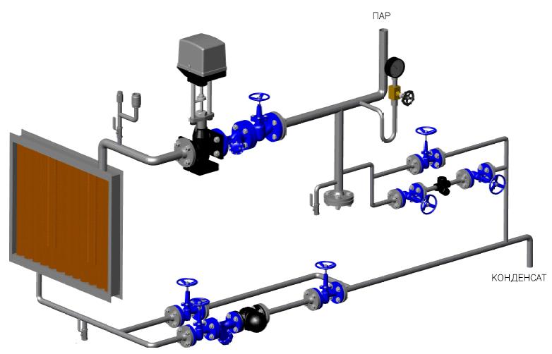 يتم التحكم في أداء السخانات التي تعمل على حامل حراري مثل البخار عن طريق صمامات خاصة مثبتة على أنبوب المدخل.