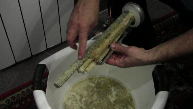 - Chemická látka - váha se seškrábe nožem a poté, co se topný článek umístí do roztoku k odstranění těchto usazenin. Zůstává tam několik hodin.