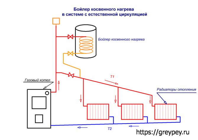 Jednookruhové plynové kotle s nepřímým kotlem pracují ve dvou hlavních schématech připojení. Princip fungování prvního je následující: