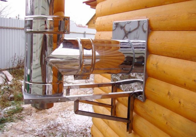 Pokud je komín vytažen z vytápění kamny, je potrubí sbíráno z trubek a částečně nataženo uvnitř areálu. V tomto případě by měla být zeď před upevněním konzol izolována.