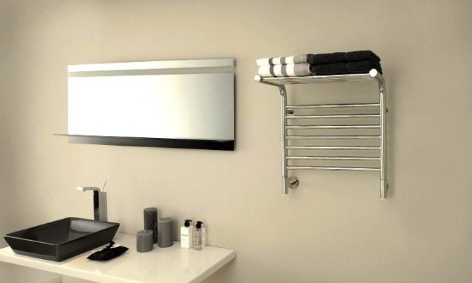 Důležité! Doporučuje se namontovat vyhřívané věšáky na ručníky v určité vzdálenosti od ostatních prvků interiéru koupelny. Tato vzdálenost je od 30 do 50 cm.