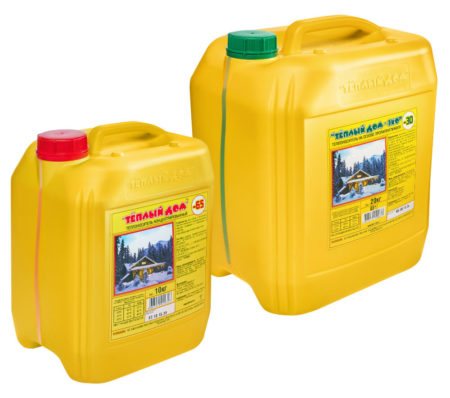 - S prahem mrazu ne vyšším než -65 stupňů (pro dosažení prahu mrazu -25 je nemrznoucí směs smíchána s vodou v poměru 6: 4).