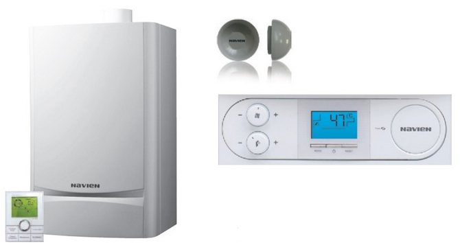 | Navien ace | The device has a control system for the operation of a gas burner, with the help of which a 13 kW device is able to heat the same volume of water as a 24 kW unit. Boilers of this model are equipped with a liquid crystal display and a remote control with a remote sensor. |