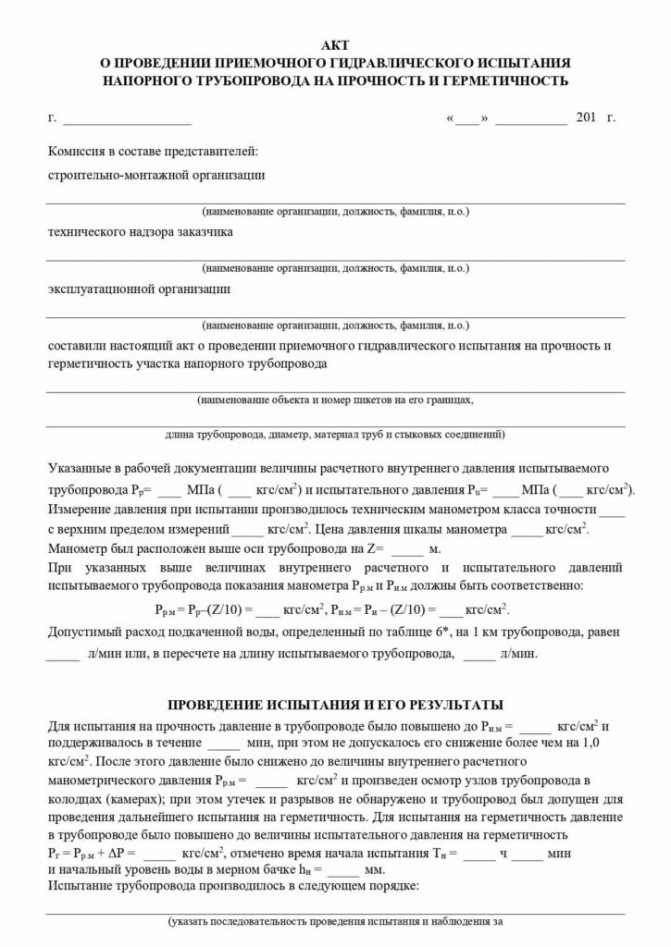 Only in the presence of all the above points and, of course, a well-working heating, you can endorse this document and proceed to the approval of payment papers. But remember that it must be preceded by a pipeline test report, a sample of which is shown below: