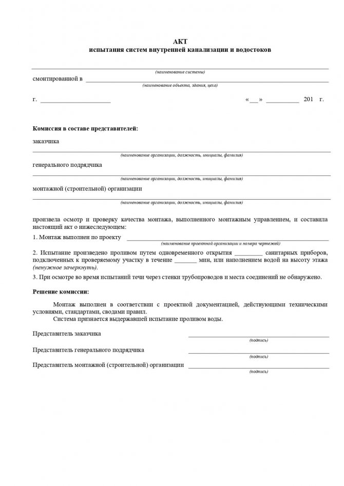 - an act of flushing performed is drawn up, which you must endorse if there are no complaints against the contractor.