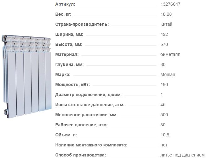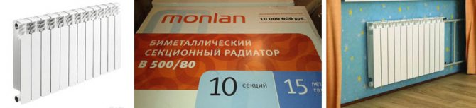 - The bimetallic radiator Monlan 500/80 is reliably protected from water hammer, thanks to the design features. According to customer reviews, the equipment has the best performance and an affordable price. Good convection, safety of use, safety margin, original design also speak in favor of such devices.