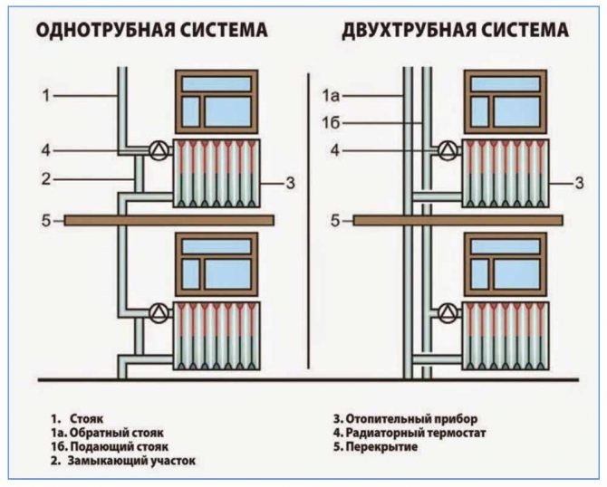 Postoje tri osnovne sheme sustava grijanja: jednocijevna (Lenjingrad), dvocijevna i radijalna.