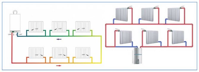Ovisno o načinu kretanja rashladne tekućine kroz cijevi, grijanje kuće može se dizajnirati na dva načina:
