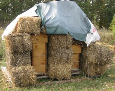 Često vlasnici uzgajivačnicu jednostavno prekriju za zimu starim krpama, stvarima, prekriju je slamom, balama sijena i zategnu cijelu konstrukciju filmom kako se ne bi smočila i rasula vjetrom.