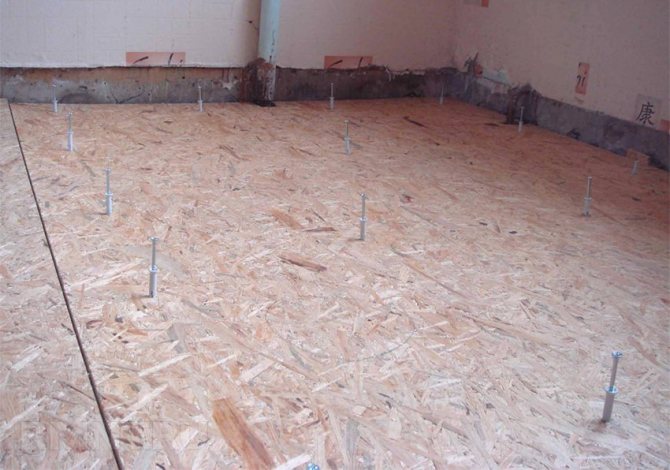 OSB ploče su čipovi koji su međusobno orijentirani međusobno zalijepljeni pomoću posebnih smola prešanjem. Zahvaljujući troslojnom okomitom postavljanju iverja i homogenom sastavu, ploče imaju visoku čvrstoću. Prilikom postavljanja ploča na pod, razmak između njih i zida mora biti najmanje 5 mm, stoga je u ovom slučaju bolje umetnuti klinove sa zida, uz pomoć kojih će se promatrati udaljenost. Nakon ugradnje svih ploča, klinovi se moraju izvaditi. OSB ploče složene su jedna blizu druge i trebale bi biti okomite na redove ekstrudiranog polipropilena.