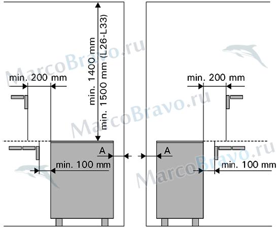 Minimalna sigurnosna udaljenost pri postavljanju štednjaka Harvia Profi L20: