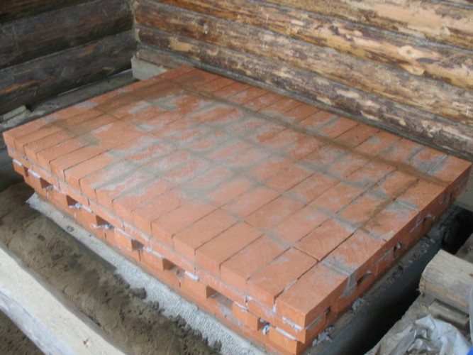 Poželjno je unaprijed postaviti podnožje peći od opeke (u fazi projektiranja kuće ili prilikom izlijevanja temelja za nju). Za peć na drva od opeke teške oko 300 kg, najbolje je pripremiti monolitnu betonsku podlogu, izlivenu na cijelo područje strukture. Ako je kuća već izgrađena i nastanjena, morat ćete rastaviti podove na odabranom mjestu, a zatim duboko u zemlju za oko 25 cm.