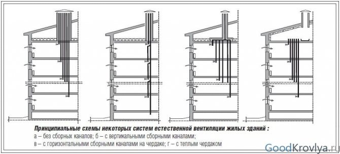 Ovaj dizajn koristi se za opremanje složene ventilacije. U gornjem dijelu zgrade svi su kanali spojeni u zajedničko okno i vode se kroz krov, poput dimnjaka. Njegova visina i promjer ovise o volumenu prostorija i udaljenosti do grebena krova.
