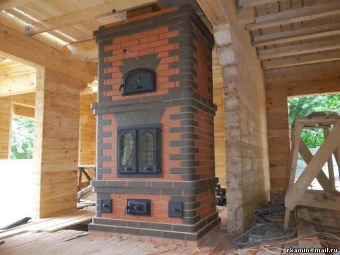 - struktura peći, koja prolazi kroz otvor u drvenom zidu, obložena je opekom;
