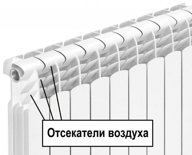 Na bočnim stranama svakog odjeljka nalaze se "perje" - okomite ploče, uz pomoć kojih metal daje toplinu. Većina aluminijskih radijatora ima odsječene ploče, smještene na vrhu ploča, koje uklanjaju zagrijani zrak unutar prostorije (vidi sliku).