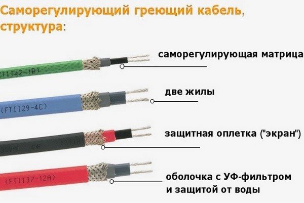 Bonyolultabb eszközben különbözik. Egy ilyen kábel belsejében két fűtőmag található, amelyek körül egy speciális mátrix található. A kábel ellenállását a környezeti hőmérséklet függvényében "állítja be". Minél magasabb, annál kevésbé melegszik fel a kábel, és fordítva, annál hidegebb van körülötte, annál jobban felmelegszik.