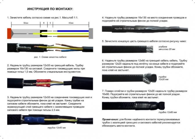 Minden nagyon egyszerű. A fűtőkábelt a hálózatról kell táplálni, ha a kábel árnyékolt, csatlakoztassa a földet és zárja le az önszabályozó kábel végét.