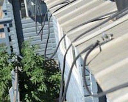 A tető szélén csík van jelölve, amelyen a kábel "kígyója" található. Az alsó határ az éltől 2-3 cm távolságra van beállítva.