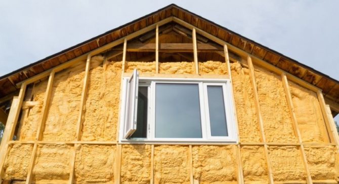 - poliuretán hab - két különálló alkotórészből álló anyag, amelyet nagy nyomás hatására kevernek össze. Levegővel érintkezve ugyanúgy viselkedik, mint a közönséges poliuretán hab - kitágul. A faház poliuretán habbal történő hőszigetelése meglehetősen hatékony és minimalizálja a hőveszteséget. Ezenkívül a PU hab képes visszataszítani a vizet;