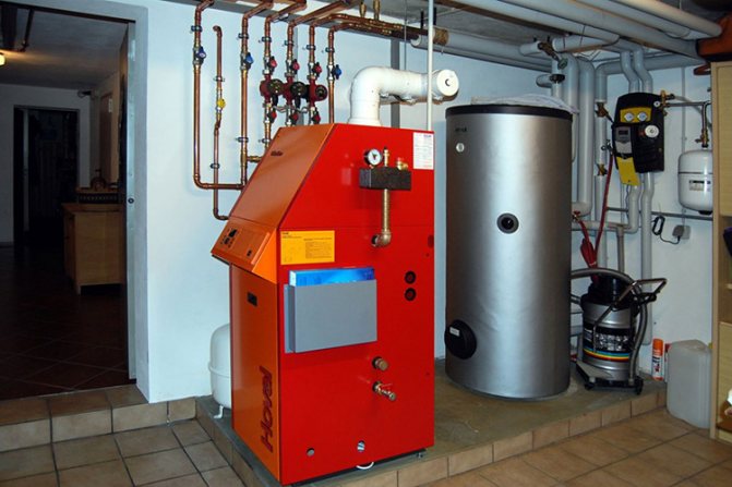 A fűtési rendszer bizonyos hőmérsékleti indikátorokig fűtött hőhordozó használatával működik. A fűtést a hőcserélő belsejében hajtják végre, majd a csöveken keresztül a hűtőfolyadék eljut a radiátorokhoz, ahol lehűl, és a ciklikus folyamatnak megfelelően ismét visszatér a kazánba.