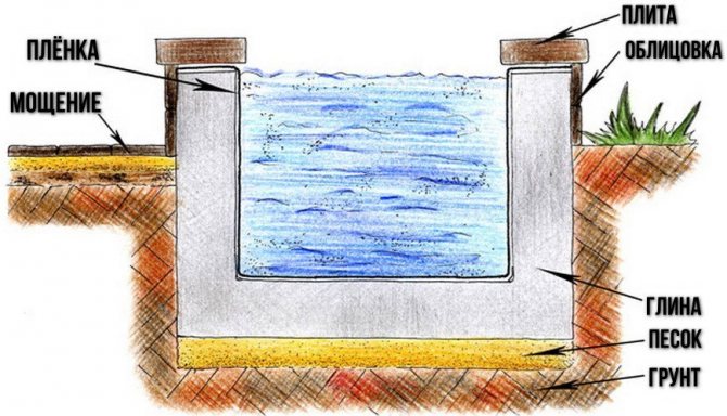a pincék és alapok vízszigetelése a talajvízzel és a szennyvízzel való érintkezésből. A 40-50 centiméteres agyagréteg abszolút vízálló.