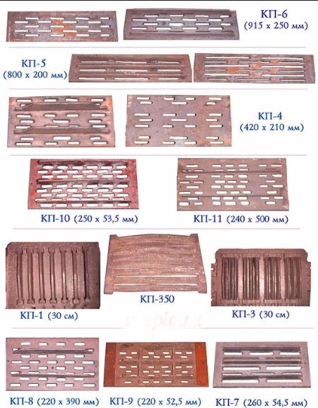 A kemencekemencék mérete változó, különböző formájúak, ezért a gyártók minden lehetséges konfigurációban elkészítik a kemence öntését. A nem szabványos tűztérekhez is talál megfelelő modellt. A rácsok lehetnek: