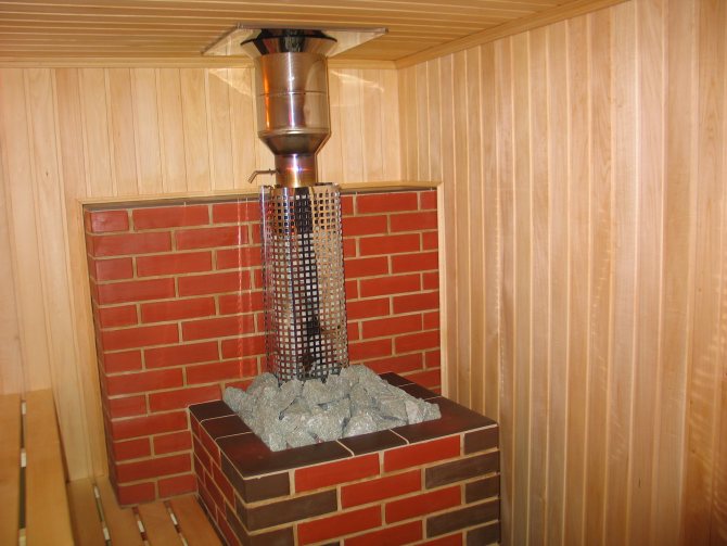 Tanács! Célszerű a szaunakályhát tűzálló téglákkal letakarni, ha több van belőle. És ezt a célt szándékosan megszerezni nagyon drága. Ezért el kell gondolkodnia azon, hogy a ház építési helyének egy másik, szükségesebb helyén használja-e.