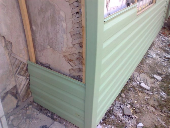 De a profil sarok helyett használhat egy közönséges egyszerű sarkot. Ebben az esetben először két panelt szerelnek fel a ház sarkára, majd ezek csatlakozását átfedik egy közönséges sarokkal.