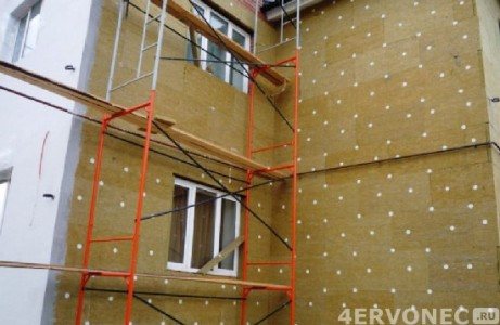 Thermische isolatie van de gevel met minerale wol - de installatie van het materiaal op de muren werd "op een rij" uitgevoerd
