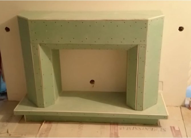Nadat u de "ruggengraat" van de toekomstige open haard hebt verzameld, gaat u deze omhullen met gipsplaat. Vergeet niet om de elementen met zelftappende schroeven te draaien met een stap tussen bevestigingsmiddelen niet meer dan 20 cm.