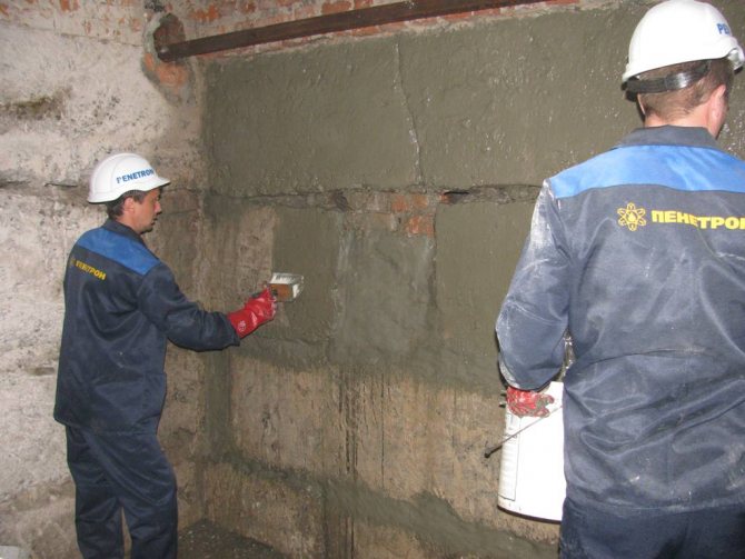 Het idee van penetratie (penetrerende waterdichting) ontstond in het midden van de vorige eeuw in Europa. Het werkingsmechanisme van cementmaterialen wordt gereduceerd tot de reactie van vrije kalk (en die zit altijd in een kunststeen!), Capillair water en ingenieuze actieve reagentia. Als resultaat een betrouwbare bescherming wordt gevormd in de dikte van de bases, waardoor het binnendringen van vocht wordt geblokkeerd.