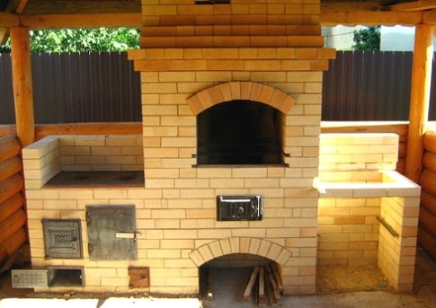 - Em seguida, é construída uma chaminé, instalada uma viseira e executado o revestimento. Não se esqueça durante o processo de construção que nas filas assinaladas no desenho, é necessário deixar espaço para as portas, cinzeiro e buracos. [/ su_list]