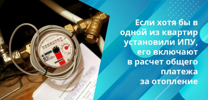 Em seguida, você precisa descobrir como o aquecimento é considerado em um prédio de apartamentos na presença de um medidor comum. É importante notar que os medidores de calor comuns em um prédio de apartamentos economizam dinheiro para todos os residentes. Sujeito à presença de tal dispositivo, o cálculo do aquecimento é realizado de acordo com suas leituras. O que é importante - dispositivos de medição individuais já podem ser instalados em apartamentos individuais, mas se eles não estiverem em todos os apartamentos, o cálculo ainda é realizado de acordo com os indicadores gerais.