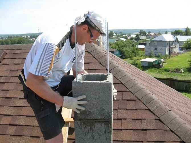 Importante. A chaminé deve ser instalada por pelo menos dois dias. Não porque o trabalho seja complicado e demorado, mas porque é necessário dar tempo para que uma parte da solução se solidifique - os blocos inferiores devem ser fixados com segurança. Caso contrário, existe a possibilidade de distorções, e esta é uma situação muito desagradável.