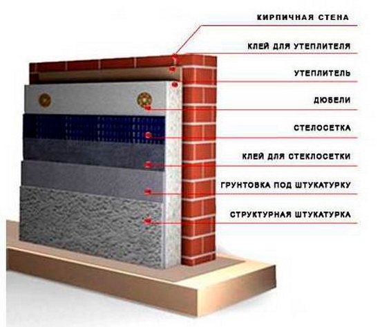 O isolamento para paredes sob um tijolo nesta versão é colocado na maioria das vezes. Isso é especialmente verdadeiro para edifícios de vários andares. Nesse caso, a obra ficará bem mais barata. Mas também existem desvantagens.
