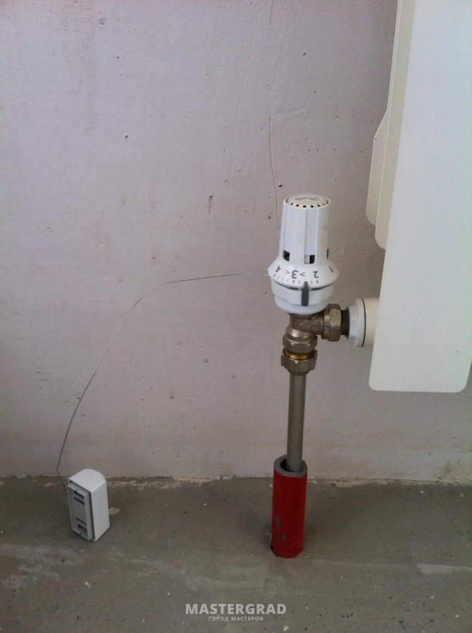 Sfat! Dacă, totuși, supapa termostatică este închisă de o bucată de interior, atunci se recomandă utilizarea unui cap termic cu un senzor extern. Senzorul este montat pe un perete, într-un loc în care nu este expus la căldură din elementele sistemului de încălzire, lumina directă a soarelui, curenți etc. Senzorul este conectat la cap folosind un tub capilar de 2-3 m (maximum 8 m).