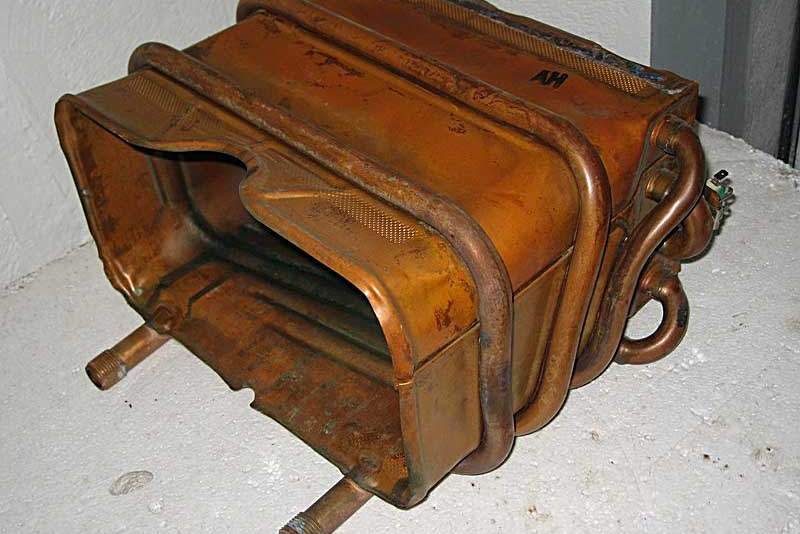 Coloana de gaz conține un schimbător de căldură, în care apa este încălzită de un arzător. Cuprul cu un coeficient ridicat de transfer de căldură transferă rapid căldura în apă, care este utilizată pentru a face o baie. Cu cât sunt mai puține impurități din aliaj, cu atât funcționează mai bine produsele din cupru. Dacă sunt prezenți, pereții recipientului se încălzesc inegal, ceea ce îi determină să ardă rapid. Uneori, pentru a reduce prețul unui schimbător de căldură din cupru, grosimea peretelui și diametrul tubului sunt reduse. Greutatea aparatului gol este de până la 3,5 kg.