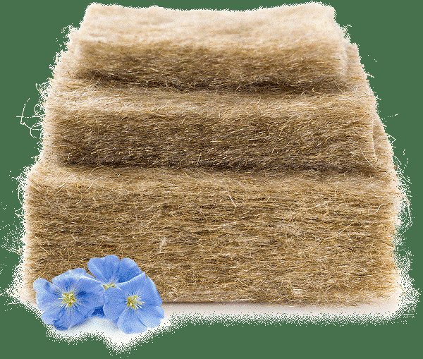 Mats. Covoarele de izolație din fibră de in sunt produse folosind amidon, care servește ca liant între fibre. În multe industrii, covorașele sunt cusute suplimentar cu fire de mătase sau bumbac. Materialul de izolare termică este produs sub formă de role și plăci cu grosimea de 5 și 10 cm. Este utilizat pentru izolarea termică a diferitelor structuri de clădire.