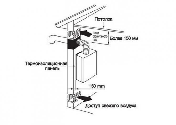 - Lucrări non-ecologice ale centralei. Pentru o căldare pe gaz care funcționează autonom, va fi necesar să se echipeze suplimentar un sistem de evacuare a gazelor de eșapament pentru a reduce emisiile de fum în atmosferă cât mai mult posibil, după ce a primit valoarea MPC (concentrația maximă admisibilă) cerută de SNiP.