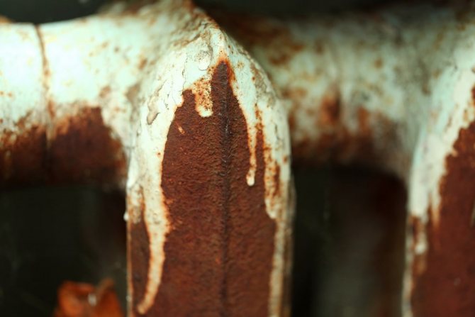 Se întâmplă ca zonele expuse la rugină să apară pe vechiul radiator. În acest caz, puteți utiliza tot felul de compoziții care distrug această placă, care sunt întotdeauna disponibile în orice magazin de hardware.