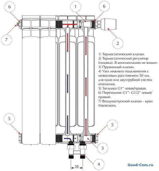 Caracteristicile tehnice ale radiatoarelor de încălzire bimetalice depind în mod direct de design și dispozitiv.