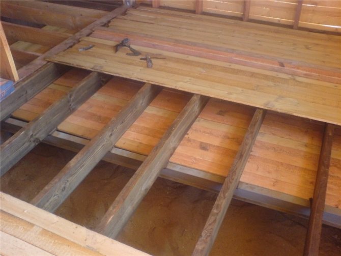 - deasupra vatei minerale, sunt așezate plăci aspre, care sunt cuie pe grinzi.