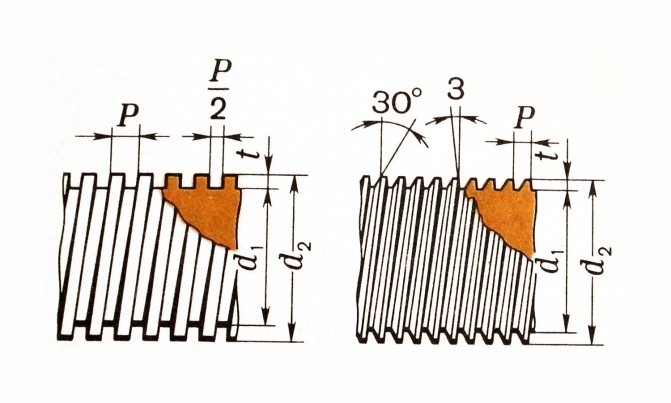 โปรไฟล์เธรดคือรูปหน้าตัดใกล้ถึงจุดเลี้ยว รูปสามเหลี่ยมและสี่เหลี่ยมสี่เหลี่ยมคางหมูและอื่น ๆ ขึ้นอยู่กับตัวบ่งชี้นี้ รูปสามเหลี่ยมใช้สำหรับการติดตั้งระบบสุขาภิบาลและองค์ประกอบของระบบโดยเฉพาะ