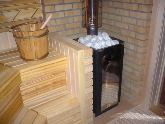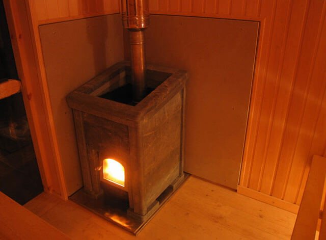 Dapat tandaan na sa harap ng kalan, ang isang plato ng apoy na gawa sa metal ay dapat na mailatag sa sahig na gawa sa kahoy nang hindi nabigo. Pinoprotektahan ng plate ng sunog ang sahig na gawa sa kahoy mula sa mga uling na maaaring mahulog sa pintuan ng apoy ng kalan ng sauna.