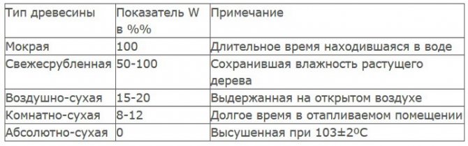 Ipinapahiwatig nila ang tinatayang bigat ng 1 metro kubiko ng iba't ibang mga lahi. Halimbawa, ang sariwang oak ay may bigat na 1000 kg, at may likas na nilalaman na kahalumigmigan na 15% - 710 kg lamang.