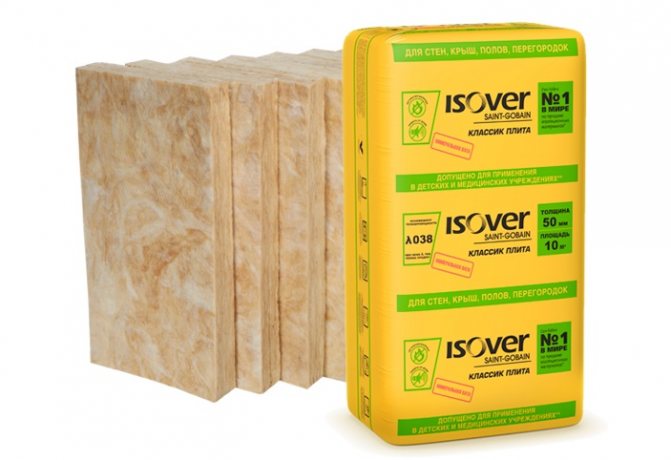 Izover Classic na kalan. Ang hugis ng mineral wool ay isang slab. Laki - 610 * 1170 mm, kapal ng 50 at 100 mm. Naka-package na 5 at 10 m2.
